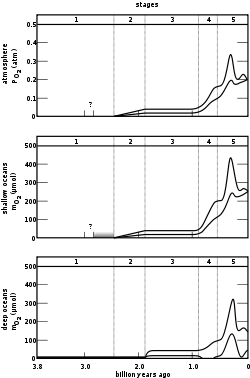 Помітна кількість кисню в атмосфері з'явилася близько 2,2 млрд років тому[3].