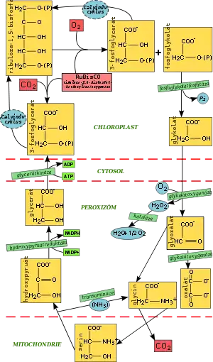 Більшість рослин світлим часом доби виробляють кисень, але в їх клітинах йде і зворотний процес: кисень поглинається в процесі дихання. Вночі в кімнаті, щільно заставленій рослинами, можна спостерігати зниження концентрації кисню і збільшення кількості вуглекислого газу. Річ у тім, що в живих клітинах рослин процес дихання відбувається цілодобово, хоча на світлі стрімкість утворення кисню завдяки фотосинтезу, зазвичай перевищує швидкість його поглинання. Так само як і у тварин, клітинне дихання рослин протікає в особливих клітинних мітохондріях.