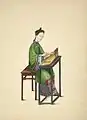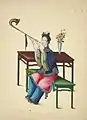 Нижче представлено акварельні ілюстрації, зроблені в Китаї у 1800-х, що демонструють кілька типів музичних інструментів: