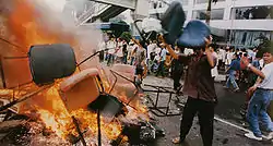 Антикитайські акції мали місце в Джакарті, Соло та інших великих містах Індонезії від Медана до Макасара. Натовп грабував і спалював магазини, знищував майно, що належало індонезійським китайцям, а також католицькі та протестантські церкви та інші культові споруди, поліцейські відділки та інші урядові будівлі; мало також місце систематичне зґвалтування китайських жінок. Понад 10 тис. осіб було вбито, хоча й не всі вони були китайцями. Пік заворушень припав на травень 1998 року. Події спровокували відставку Сухарто, а багато китайців покинуло Індонезію й виїхало до Сінгапуру, Гонконгу та Австралії.