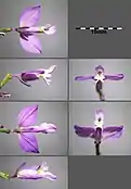 Багаторічна трав'яниста рослина 10–20 см завдовжки. Приквітки лінійні, загострено-плівчасті. Квітки 5–7 мм довжиною в багатоквіткових китицях. Віночки синьо-фіолетові, рожеві, дуже рідко білі; крила за довжиною рівні зав'язі, еліптичні, до основи відразу звужені. Коробочки сидячі оберненояйцевидні, з невеликою виїмкою і вузьким крилом[2].