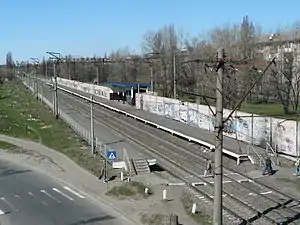 ![]() Київська Русанівка, зупинний пункт. Ліворуч - могилки тварин. | |