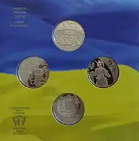 | 5 | нейзильбер | 16,54 | 35,0 | спеціальний анциркулейтед | рифлений | 50 000 (весь тираж у буклетах разом з 3 іншими монетами) |