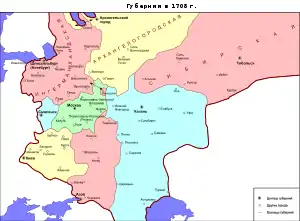 У 1719 році в Київській губернії було створено 4 провінції: Київська, Бєлгородська, Орловська і Севська, які у свою чергу розділені на дистрикти.
