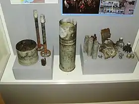 На виставці рештки від бойових снарядів, градів, гільзи від самохідної артилерійської установки, мінометні «хвостики».