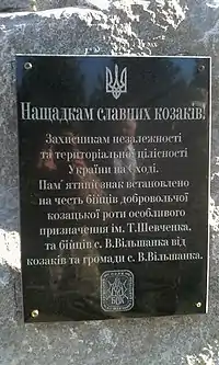 - Пам'ятний знак на честь воїнів добровольчої козацької роти ім Т Шевченко. 23 вересня 2015. Процитовано 14 січня 2016.