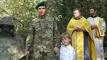 - Під час відкриття меморіального пам'ятника загиблим прикордонникам[32][33],