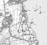 | № 21 | с. Козаровичі | 9 | 576 (кулемет. напівкапонір, тип «М2»), 577 (кулемет., тип «М1»), 578 (арт. напівкапонір, тип «Б»), 579 (кулемет., тип «Б»), 580 (кулемет., тип «М1»), 581 (кулемет., тип «М2» з бронековпаком ВСУ), 582 (кулемет., тип «М2»), 601 (кулемет., тип «М2»), 602 (кулемет., тип «М2») | ![]() |