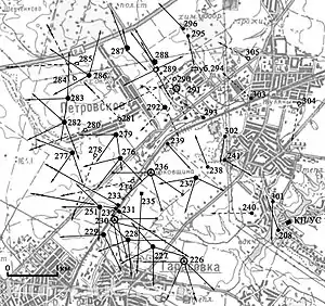 | № 5 | с. Тарасівка — с. Петрівське (нині — с. Святопетрівське) | 44 | 208 (кулемет., тип «МС»), 226 (кулемет. суміщений з арт.-спост. пунктом, тип «Б»), 227 (кулемет., тип «Б»), 228 (кулемет., тип «Б»), 229 (кулемет., тип «Б»), 230 (арт.-спост. пункт, тип «Б»), 231 (арт. позиція ТАУТ), 232 (арт. позиція ТАУТ), 233 (арт. позиція ТАУТ), 234 (арт. позиція ТАУТ), 235 (арт. позиція ТАУТ), 236 (арт.-спост. пункт, тип «Б»), 237 (кулемет. ДОТ, тип «М1»), 238 (кулемет. ДОТ, тип «МС»), 239 (кулемет. ДОТ, тип «МС»), 240 (кулемет. ДОТ, тип «МС»), 241 (кулемет. ДОТ, тип «МС»), 251 (кулемет. ДОТ, тип «Б»), 276 (кулемет. ДОТ, тип «М2»), 277 (кулемет. ДОТ, тип «Б»), 278 (арт. позиція ТАУТ), 279 (кулемет. ДОТ, тип «Б»), 280 (арт. позиція ТАУТ), 281 (арт. позиція ТАУТ), 282 (кулемет. ДОТ, тип «Б»), 283 (кулемет. ДОТ, тип «Б»), 284 (арт. позиція ТАУТ), 285 (арт. позиція ТАУТ), 286 (кулемет. ДОТ, тип «М1»), 287 (кулемет. капонір, тип «М2»), 288 (кулемет. напівкапонір, тип «М2»), 289 (кулемет., тип «М2» з бронековпаком ВСУ), 290 (арт. позиція ТАУТ), 291 (арт.-спост. пункт, тип «Б»), 292 (кулемет., тип «Б»), 293 (кулемет., тип «МС»), 294 (сховище, тип «М2»), 295 (кулемет., тип «МС»), 296 (кулемет., тип «МС»), 301 (кулемет., тип «МС»), 302 (кулемет., тип «МС»), 303 (кулемет., тип «МС»), 304 (кулемет., тип «МС»), 305 (кулемет., тип «МС») | ![]() |