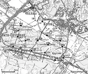 | № 6 | с. Віта Поштова — с. Юрівка | 15 | 178 (кулемет., тип «Б»), 179 (мінна група з оголовком типу «М1»), 180 (кулемет., тип «Б»), 181 (кулемет., тип «М1»), 187 (арт. позиція ТАУТ), 201 (кулемет. капонір, тип «М2»), 202 (кулемет., тип «Б»), 203 (кулемет., тип «Б»), 204 (арт.-спост. пункт із двома бронековпаками ГАУ), 205 (мінна група з 5 оголовками типу «МС» та «М1»), 206 (арт. позиція ТАУТ), 207 (арт. позиція ТАУТ), 209 (кулемет., тип «М1»), 210 (кулемет., тип «Б»), 211 (арт. позиція ТАУТ) | ![]() |