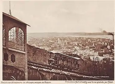 - Со вчерашнего дня, 8 мая, Михайловскій механическій подъемъ городской желѣзной дороги открытъ для движенія публики Архівовано 21 травня 2015 у Wayback Machine. // Кіевлянинъ. — 1905. — № 127. — 9 мая. — С. 2. (рос. дореф.)