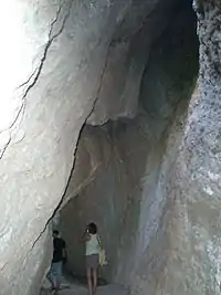 Під час існування поселення верхнього шару (бл. 60 тис. років тому) був побудований штучний заслін, який поліпшив умови існування в гроті.