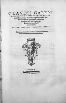 Гале́н (грец. Γαληνός), чи Гале́н Перга́мський, часто використовується латинізована форма імені Кла́вдій Гале́н (лат. Claudius Galenus; 129 або 131, Пергам — близько 200) — грецький лікар, хірург і філософ римської доби[4][5][6]. Гален вважав, що людський організм складається із щільних і рідких частин, він досліджував організм шляхом спостереження за хворими і розтину трупів. Одним з перших застосував вівісекцію і став основоположником експериментальної медицини. Його основні праці з анатомії: «Анатомічні дослідження», «Про призначення частин людського тіла».