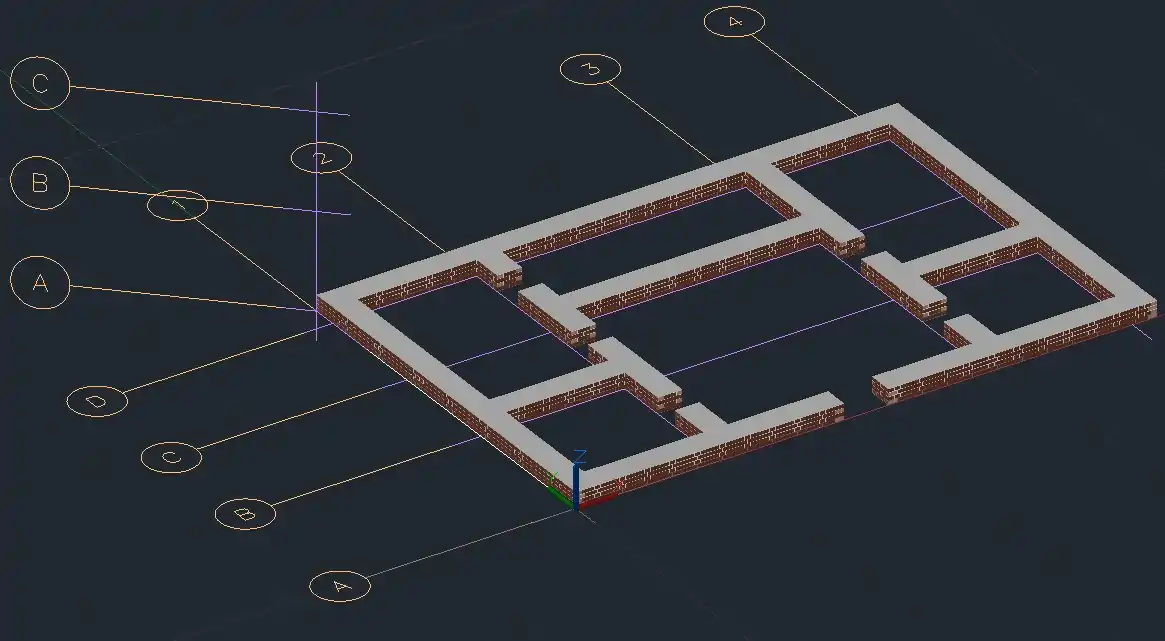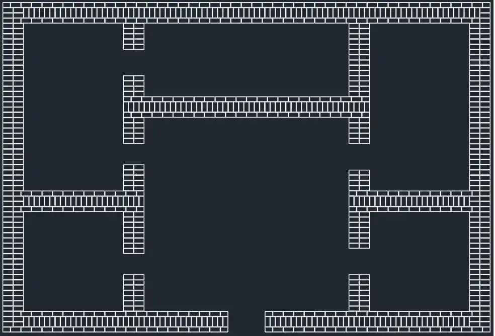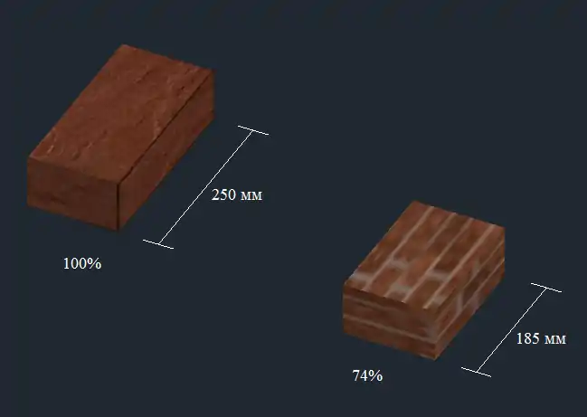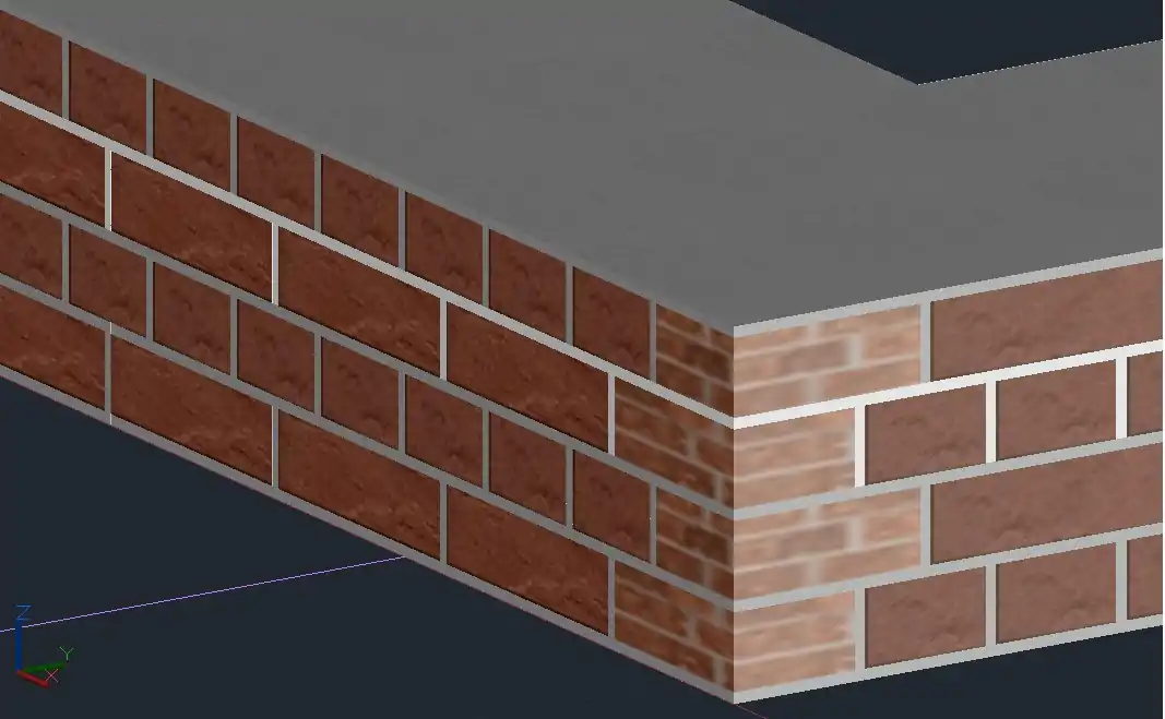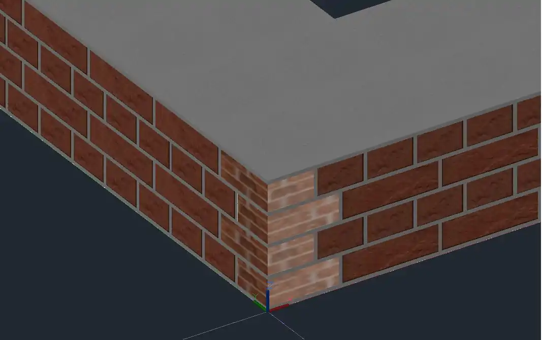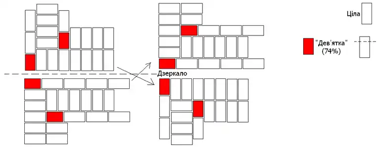 Зверніть увагу на те, що цеглини на кутах мають менші розміри (185 мм) — так звані "дев'ятки". Вони показані з іншою (відмінною від цілої цеглини) текстурою на наступних малюнках.