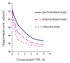 Водночас кількість води, якою зачиняється суміш, визначає реологічні властивості суміші. При зниженні кількості води для забезпечення оптимальної рухомості суміші (водоредукуючий ефект) застосовуються поверхнево-активні речовини. Більшість сучасних методів управління змочуванням у різних технологічних процесах засноване на застосуванні розчинів поверхнево-активних речовин. Ці речовини можуть адсорбуватися на поверхні розділення фаз, значно знижуючи поверхневий натяг[1].