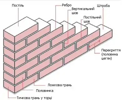 Цегла у попередньому ряді повинна перекриватися цеглою наступного ряду як уздовж стіни, так і поперек, що дає можливість рівномірно розподілити усі навантаження, у тому числі і власну вагу стіни, по товщині й висоті стіни до фундаменту.