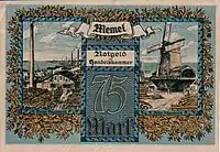 У 1922 році з дозволу французької адміністрації Мемельського краю (Рада послів Антанти) в обігу з'явилися нотгельди Мемельського краю. У 1923 році, після Клайпедського повстання, територія краю була анексована Литвою. В період 1922-1923 рр. друкувалися бони номінальною вартістю в ½, 1, 2, 5, 10, 20, 50, 75, 100 марок. З лютого 1923 року мемельську марку замінив литовський лит[4].