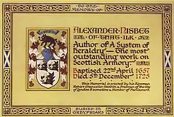 Олександр Нісбет отримав юридичну освіту, працював адвокатом, але незабаром зайнявся історією та геральдикою. У 1702 році він опублікував свою першу наукову працю та есей на тему історії шотландських кланів. Він здійснив величезну роботу по дослідженню системи шотландської геральдики, яку опублікував у 1722 році. Ця праця перевидавалася в 1742, 1804 і 1816. Олександр Нісбет помер в 1725 році.