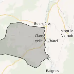 - Розташування муніципалітету Клан на мапі Франції та сусідні муніципалітети