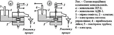 В імпульсному клапанному живильнику ПРІ-1 об’єм порції реагенту, що дозується, є функцією часу відкриття клапана, який управляється електронною системою.