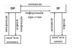 - процесор даних (DP - Data Processor) - функціональний пристрій, що працює як перетворювач даних, у відповідності з арифметичними операціями;