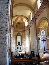 Ще у першій третині XX ст. храм прикрашав чималих розмірів вівтарний чудотворний образ Матері Божої Клеванської пензля Карла Дольчі, майстра болонської школи XVII ст.[6], який спочатку перебував у замковій каплиці[7]. Трохи південніше костелу стоїть двоярусна дзвіниця з невеликим декоративним ліхтариком на вершині шатра.