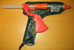 Клейовий (клеєвий) пістолет — призначений для гарячого склеювання (паяння) різних матеріалів. Він широко використовується для склеювання дерева, кераміки, ДСП, пластиків за допомогою клейового розплаву. Крім того, його можна використовувати для закладення вікон, швів плитки, герметизації сантехнічних з'єднань, реставрації книжкових палітурок, ремонту взуття та килимових покриттів, аранжування засушених квітів, флористики і дизайну, склеювання пластмас, ремонту електричної ізоляції, різноманітного домашнього конструювання, в гуртковій роботі з учнями та багато іншого.