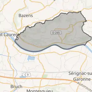 Муніципалітет розташований на відстані[2] близько 540 км на південь від Парижа, 105 км на південний схід від Бордо, 15 км на захід від Ажена.