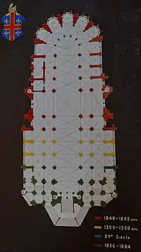 У XIV столітті в трансепті собору з'явилися два вікна-«троянди», кожне з яких завширшки 8,5 м. Між 1444 та 1474 роками над хорами був встановлений кам'яний шпиль, зруйнований після 1741 року. У 1507–1512 роках стелю собору було піднято та вкрито свинцем. Через нестачу коштів довелося відмовитися від оформлення фасаду в стилі полум'янистої готики.