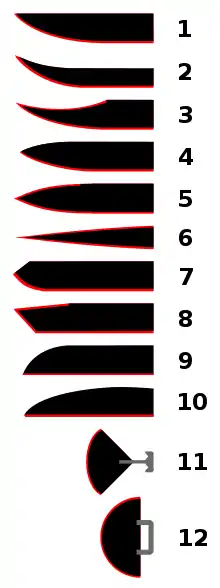 За формою розрізняють прямі, вигнуті і хвилясті леза. Поперечний переріз леза може бути плоским, ромбічним, гранча́стим. Лезо буває двох видів: гладке і пилкоподібне (зубчасте лезо або серейтор).