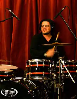 ![]() Claude Salmiéri jouant sur une batterie "Salmiéri Drums" | |