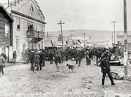 Містечко стало значним центром за часи Клондайкської золотої лихоманки. Чим більше золота видобувалося з надр Клондайку, тим більше старателів залишалося в цьому регіоні на тривалий час. Тамтешні містечка, які називали «бумтаунами», швидко перетворювалися на досить великі поселення, які пропонували приїжджим їжу, нічліг і, зрештою, хоча б натяк на цивілізацію. Найбільшим з них був Доусон-Сіті. Поселення на перетині річок Клондайк та Юкон, що до початку лихоманки налічувало лише 500 жителів, через два роки стало містом, яке процвітало і постійно збільшувалось, легендарним місцем, готовим прийняти новоприбулих 24 години на добу. У 1898 в Доусон-Сіті населення стрімко зросло до 40 000 жителів — у місті мало не настав голод[127]. Проте з кінцем золотої лихоманки в 1899 населення містечка зменшилось до 8 000, а в 1902 — до 5 000.