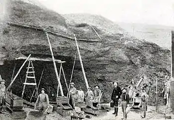 Гірничі розробки починалися з очищення поверхні від рослинного шару й сміття[89]. Потім викопувалася шахта. Якщо шахта видавалася перспективною, вона поглиблювалася на всю товщину алювію аж до корінних порід, де золота було найбільше[89]. Пробивання вертикальної шахти ретельно контролювалося, щоб не пропустити можливу золоту жилу і вчасно відкоригувати напрямок пошуків[89].