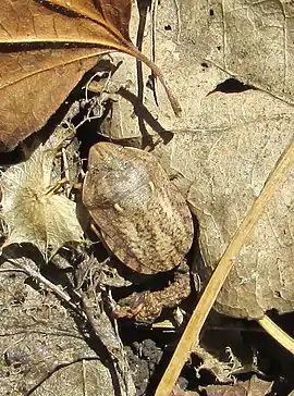 ![]() Зазвичай клопи-черепашки зимують під опалим листям. Мелітополь, Піщанська балка. 2018 рік. | ||||||||||||||||||||||