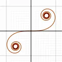 Клотоїда, Спіраль Корню або Спіраль Ейлера — крива, в якої кривизна змінюється лінійно як функція від довжини дуги.[1]