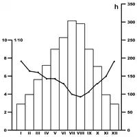 | Місто | Висота н.р.м. | Січень | Лютий | Березень | Квітень | Травень | Червень | Липень | Серпень | Вересень | Жовтень | Листопад | Грудень | Рік |
