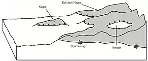 Протилежністю тектонічній скелі є тектонічне вікно, отвір або зазор у покришці.