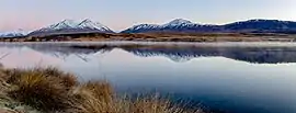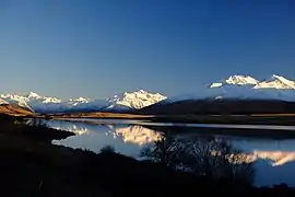 ![]() Озеро Клірвотер із засніженою горою Поттс | ||||