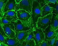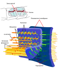 - Клітинна адгезія. Мембрани тварин, зокрема деякі мембранні білки, такі як кадгерини, забезпечують прикріплення клітин багатоклітинного організму одна до одної або до позаклітинного матриксу. Таким чином забезпечується структурна цілісність тканин тваринного організму. Контакт із мікрооточенням за участі мембранних білків також є важливим для виживання багатьох типів клітин, без нього вони гинуть шляхом апоптозу[46][47].