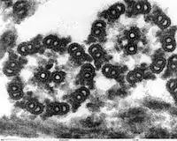 На поверхні багатьох грам-негативних бактерій наявні тонкі волосоподібні вирости, які не беруть участі у забезпеченні пересування; вони називаються ворсинками або фімбріями. Термін «фімбрії» інколи використовують взаємозамінно з терміном «пілі», хоча останній часом вживають тільки до структур, задіяних у статевому процесі кон'югації — статевих або F-пілей. Інші типи ворсинок тонші за F-пілі. Принаймні деякі із них беруть участь в прикріпленні бактерійних клітин до субстрату[36]. Наприклад, збудник гонореї — Neisseria gonorrhoeae — використовує фімбрії для утримання на слизовій оболонці живителя [37].