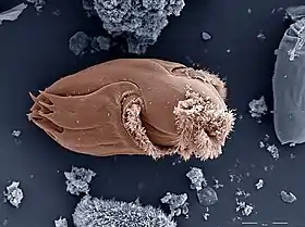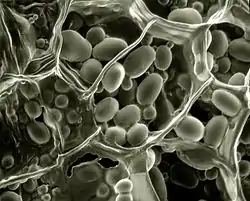 Ендоспори — це оточені щільною оболонкою структури, що містять ДНК бактерії і забезпечують виживання у несприятливих умовах. До утворення ендоспор здатні лише деякі види прокаріот, наприклад представники родів Clostridium (C. tetani — збудник правцю, C. botulinum — збудник ботулізму, C. perfringens — збудник газової гангрени тощо) та Bacillus (зокрема B. anthracis — збудник сибірки). Для утворення ендоспори клітина реплікує свою ДНК і оточує копію щільною оболонкою, з утвореної структури видаляється надлишок води, і в ній сповільнюється метаболізм[40]. Спори бактерій можуть витримувати досить жорсткі умови середовища, такі як тривале висушування, кип'ятіння, короткохвильове опромінення тощо[35].