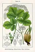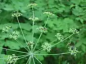 Багаторічна рослина 50–180 см заввишки. Коренева шийка оповита залишками відмерлих листків. Стебло голе, довгасто-смугасте, з сизим нальотом, вгору гіллясте. Листки великі, прикореневі; на довгих черешках, 20–25 см завдовжки, трикутно-яйцюваті, двічі-тричі трійчасті; частки першого порядку на довгих черешках, кінцеві округло-яйцеподібні або округлі, цільні або надрізано-тупозубчасті; верхні листки більш дрібні, сидячі, з роздутими піхвами. Зонтики великі, 12–25 см в діаметрі, з 15–25 нерівними променями. Обгорточки з дрібних ланцетових листочків. Плоди еліптичні, з вузькокрилоподібними ребрами, 6–8 мм завдовжки[2].