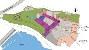 Палац заснований як генуезька фортеця 1191 року, згодом багаторазово розширювався і перебудовувався. Починаючи з кінця XIII століття палац належить генуезькому роду Ґрімальді.
