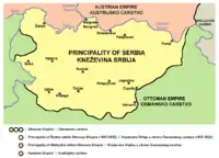 Спочатку держава займала територію колишнього Белградського пашалика, але в 1831—1833, воно розширило свої межі на захід, схід і південь. У 1829, відбувається визнання турками автономії Сербії. У 1867, османські війська залишають територію князівства. У 1869, нова конституція визначала Сербію як незалежну державу. У 1878, Князівство Сербія ще розширює свої кордони на південний схід, в тому ж році проходить Берлінський конгрес, гарантуючий повну незалежність Сербії від Османської імперії і повне визнання з боку інших держав. У 1882, Князівство Сербія проголошується Королівством Сербія.