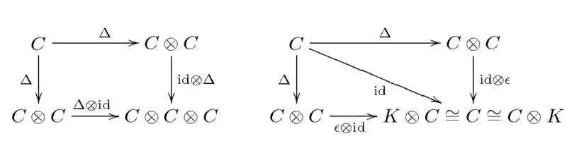 Коалгебра над полем K — це векторний простір C над K разом з K — лінійними відображеннями і , такими що