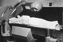 Пацієнтка проходить променеву терапію гамма-променями в кобальтовій гарматі