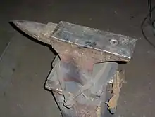 - Ріг — виступна загострена частина ковадла, призначена для гнуття заготовок під різноманітними кутами й кування виковків у вигляді кілець.