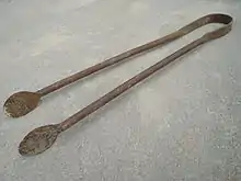 - кліщі — інструмент для виймання заготовок з горна й утримування їх на ковадлі;