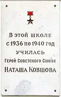 - Іменем Наталії Ковшової в 1964 році названа московська школа № 281 в Уланському провулку, де вона навчалась. З 1965 р. це «англійська» школа № 64, а сьогодні № 1284. В 60-ті роки була створена кімната-музей, де зберігаються її речі, одяг, зошити, книги. День народження Наталії став традиційним святом — Днем честі школи. За постановою Уряду Москви ця будівля була повністю знесена літом 2003, а через рік, на тому місці, збудована нова школа.