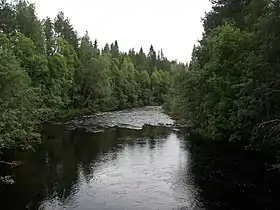 Річка утворює два великих пороги — Стурфаллет (швед. Storfallet) (30 км від гирла) і Слюбергсфорсен (швед. Slybergsforsen). [2] Після порогів вона тече по рівнині до впадіння у Ботнічну затоку.
